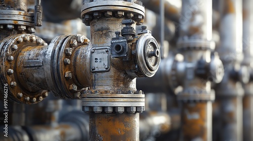 Industrial piping with rust and valves.