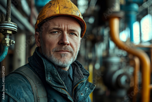 Industrial Portrait: Skilled Engineer in Chemical Plant with Workers and Machinery