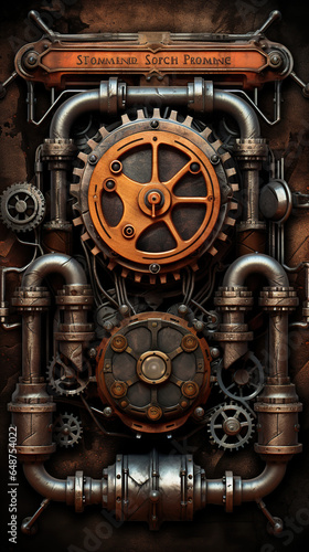 industrial poster design, gritty, cyberpunk, steampunk, phone wallpaper, background, beautiful, surreal