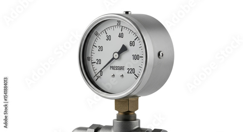 Industrial pressure gauge close-up isolated on white background showcasing measurement features