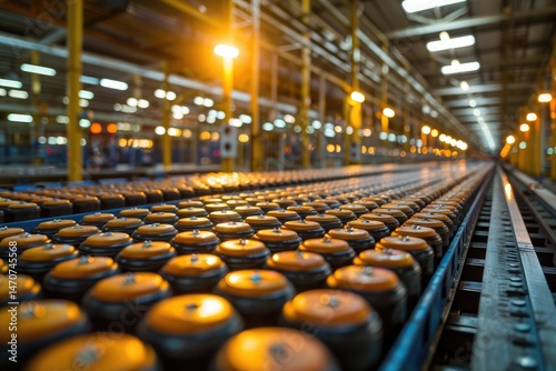 Industrial production line with round objects.