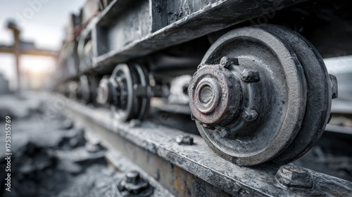 Industrial railroad wheel closeup