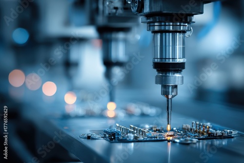 Industrial Robotic Arm Assembling a Circuit Board with Precision