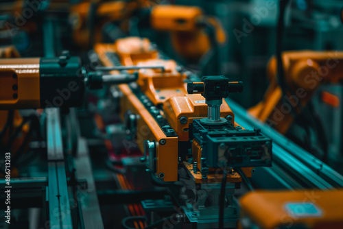 Industrial Robotic Arm Assembly Line Close-up