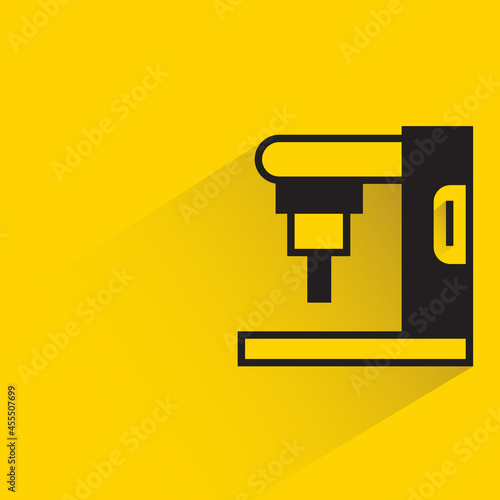 industrial robotic machine and cnc icon on yellow background