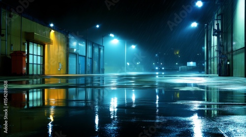Industrial Scene with Harsh Lighting and Reflection