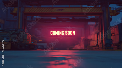 industrial setting with neon coming soon sign
