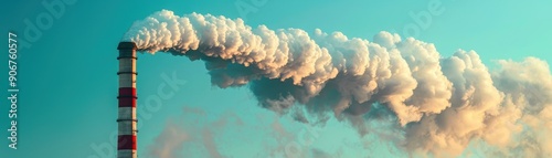 Industrial Smokestack Emitting Thick White Smoke Against a Clear Blue Sky During Daytime