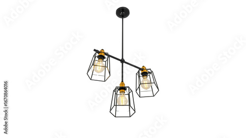 Industrial Style Three Bulb Pendant Light Fixture Interior Illustration