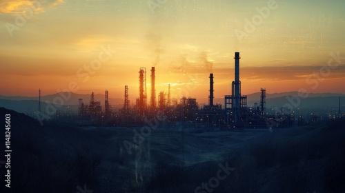 Industrial sunset over oil refinery region unknown landscape photography urban environment distant view energy production concept