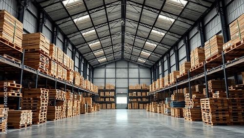 Industrial Warehouse Interior with Pallets and Branding Space
