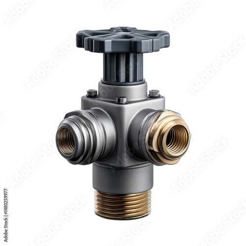 Industrial Water Valve with Multi-Output Design for Plumbing and Water Management Applications on transparent background