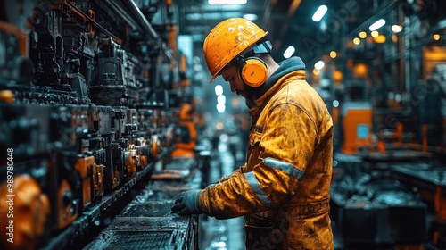 Industrial Worker Checking Machinery