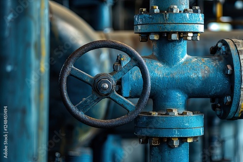 Industrial zone, Steel pipelines and cables in oil and gas industry. Energy industry