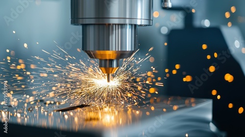 Industrielle Metallverarbeitung mit schweren Maschinen und Funken für das Konzept des Fertigungschaos