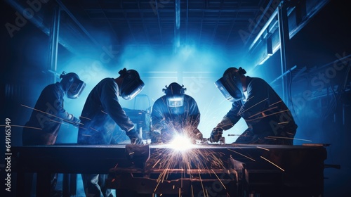 Industry welders worker perform arc welding in factories