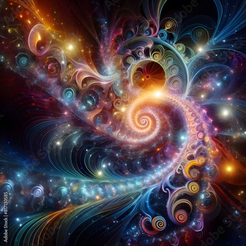Infinite iridescent abstract colorful shapes pulsating and shimmering in a cosmic display