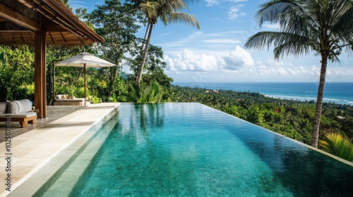 Infinity Pool Overlooking Tropical Ocean and Lush Foliage