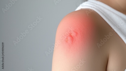 Inflamed boil with redness on a person's shoulder requiring medical attention.
