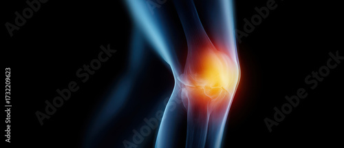 Inflamed knee pain joint injury glowing heat anatomy on black background