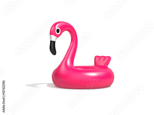 Inflatable pink flamingo isolated on white background. 3D rendering.
