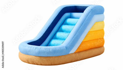 Inflatable water slide for kids, blue, orange, and yellow, isolated on white. Generative AI