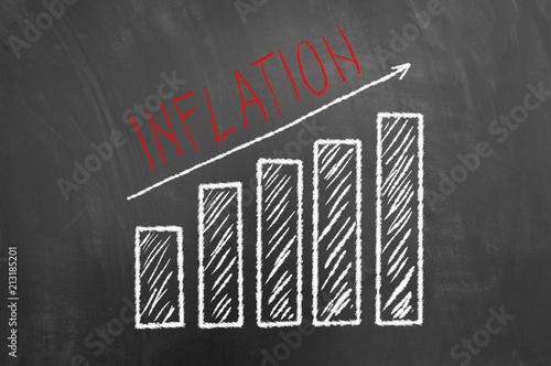Inflation bars and arrow up graphic on chalkboard or blackboard .