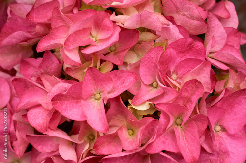 Inflorescence of the red flowers of hydrangea close-up, isolated on white background