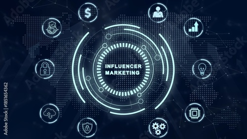 Influencer marketing concept. Business, Technology, Internet and network concept. 3d illustration