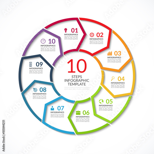 Infographic circle template. Simple vector concept banner with 10 options, steps, parts