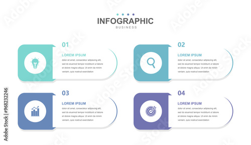 Infographic Illustration design template with icons and 4 options of business simple, workflow layout, diagram, report, web design. Creative, vector, illustration.