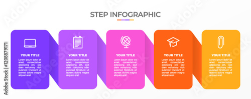 Infographic template. 5 Step timeline journey, Flat simple infographics design template. Presentation graph. Business concept with icon 5 options or steps. Background vector illustration.