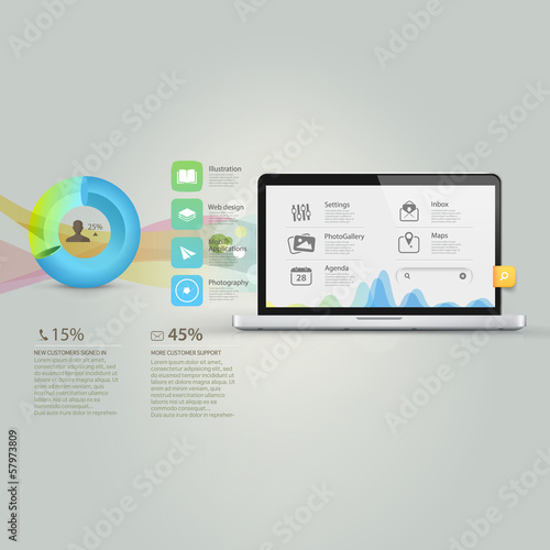 Infographics elements:Computer laptop with icons set and graphs