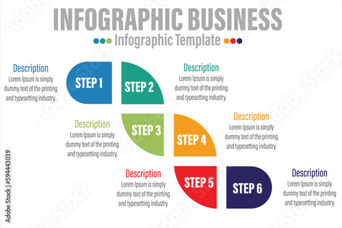 infographics number options template with steps, with 6 Steps, Six 6 option 6 label. Can be used for workflow layout, diagram, business step options, banner, web design.