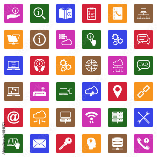 Information Icons. White Flat Design In Square. Vector Illustration.