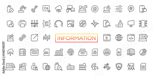 Information technology line icons collection. Big UI icon set in a flat design. Thin outline icons pack