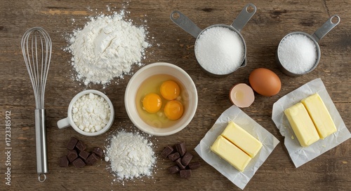 Ingredients for Baking Cookies on Rustic Wooden Surface