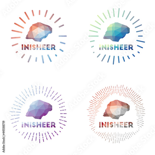 Inisheer low poly sunburst set. Logo of island in geometric polygonal style. Vector illustration.