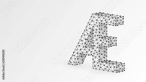 Initial based clean AE letter symbol. Universal elegant luxury alphabet aesh letter concept design. Abstract, digital, wireframe, low poly mesh, Raster white origami 3d illustration. Line dot