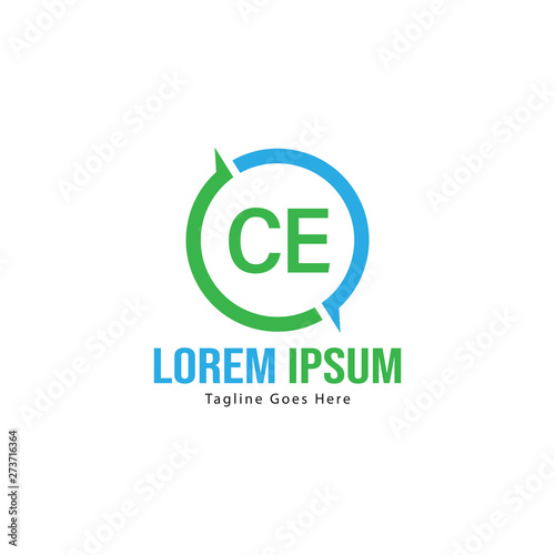 Initial CE logo template with modern frame. Minimalist CE letter logo vector illustration