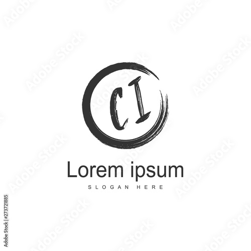 Initial CI logo template with modern frame. Minimalist CI letter logo vector illustration