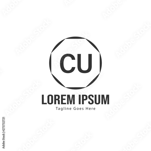 Initial CU logo template with modern frame. Minimalist CU letter logo vector illustration
