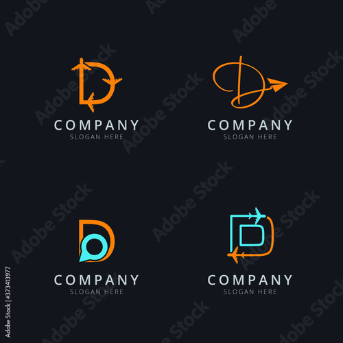 Initial D logo with travel elements in orange and blue color