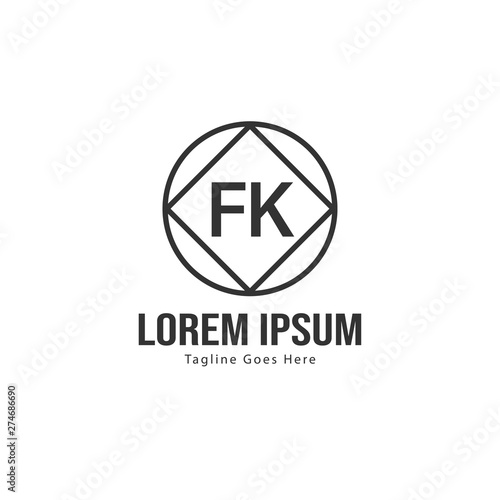 Initial FK logo template with modern frame. Minimalist FK letter logo vector illustration