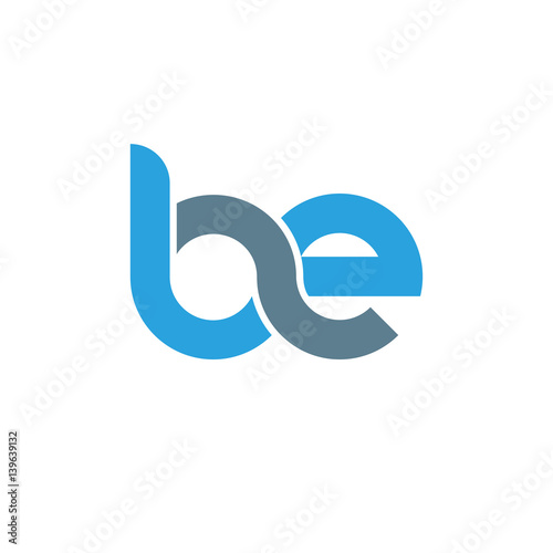 Initial letter be modern linked circle round lowercase logo blue gray