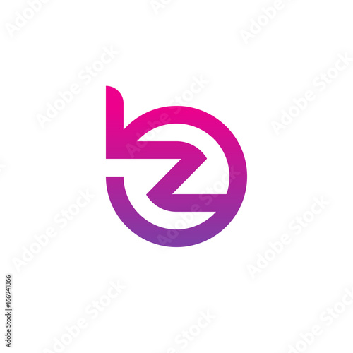 Initial letter bz, zb, z inside b, linked line circle shape logo, purple pink gradient color
