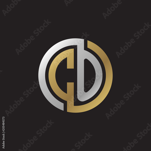 Initial letter CO, looping line, circle shape logo, silver gold color on black background