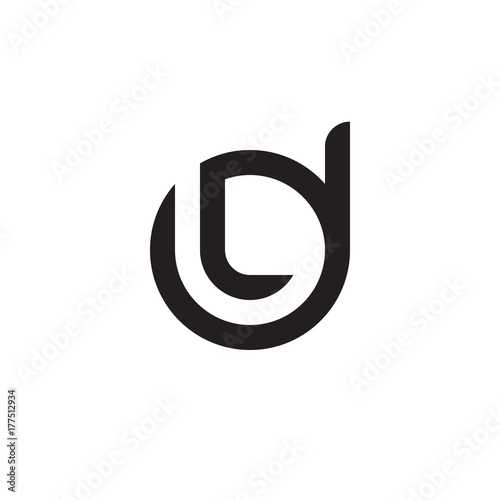 Initial letter dl, ld, l inside d, linked line circle shape logo, monogram black color