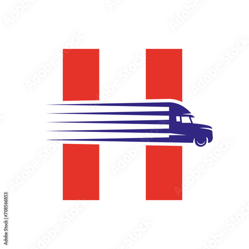 Initial Letter H Truck Logo For Transportation Symbol. Transportation Logotype