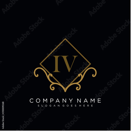 Initial letter IV logo luxury vector mark, gold color elegant classical